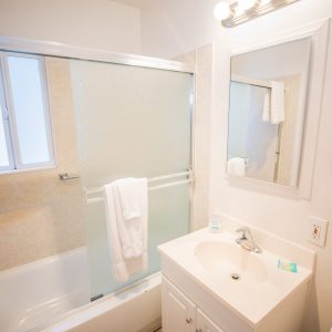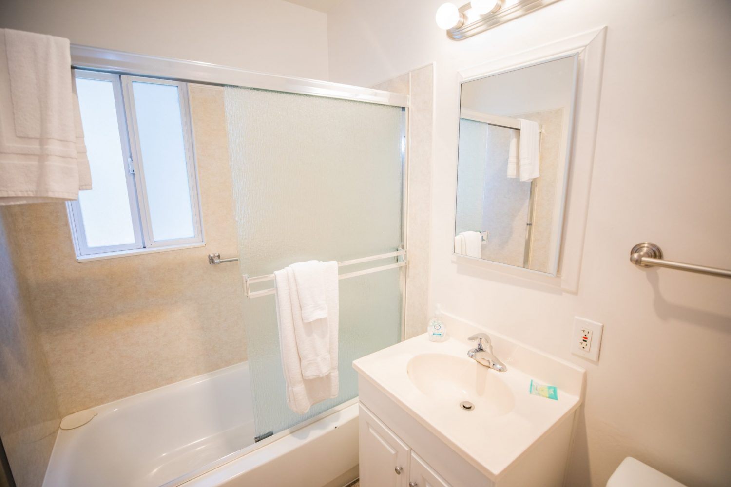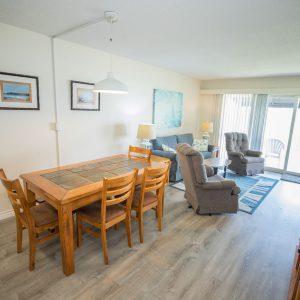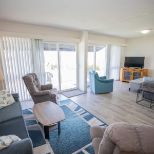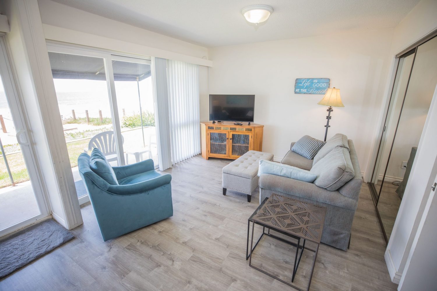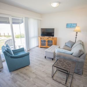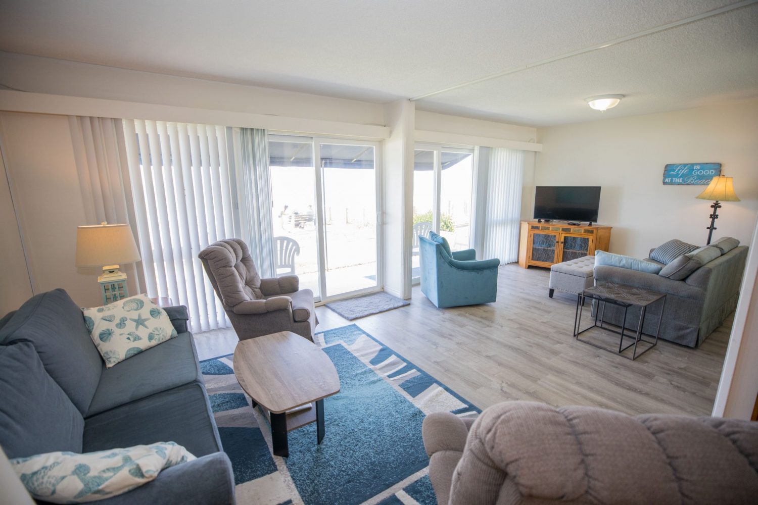 There are two larger newly renovated, two bedroom apartments that include a larger dining area and an additional ocean front room with sliding glass door access to a balcony or patio.